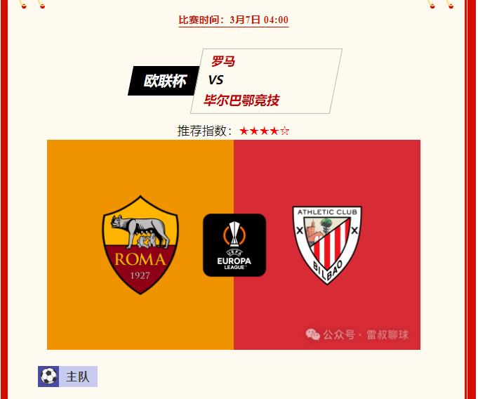 2025-03-06日 今日剩余欧战,仔细研究,全体起立!罗马VS毕尔巴鄂竞技;罗马主场有剧本?